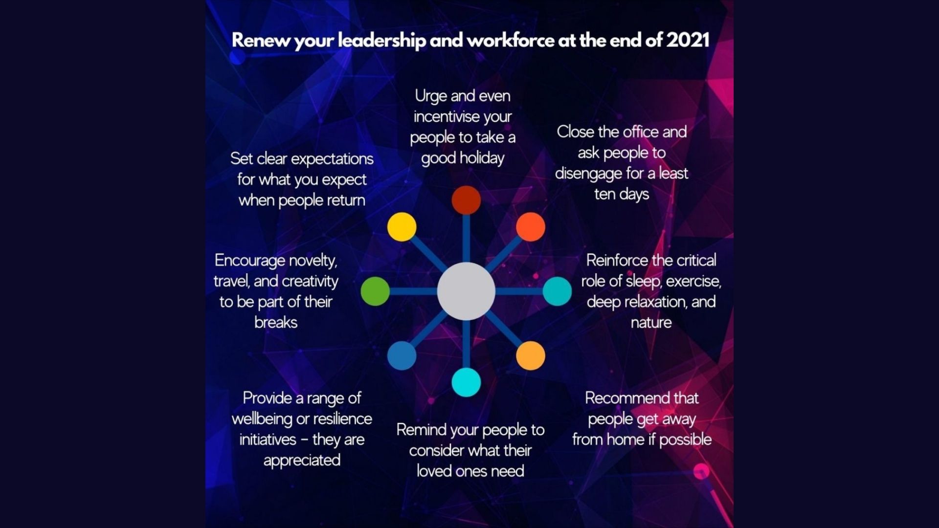 With Covid’s fourth wave of infections and a new variant, we are deep in a prolonged adversity. Patience and resilience are wearing thin. To retain your best people and prepare them for the opportunities of 2022, we recommend you communicate the importance of an intelligent break at the end of the year.