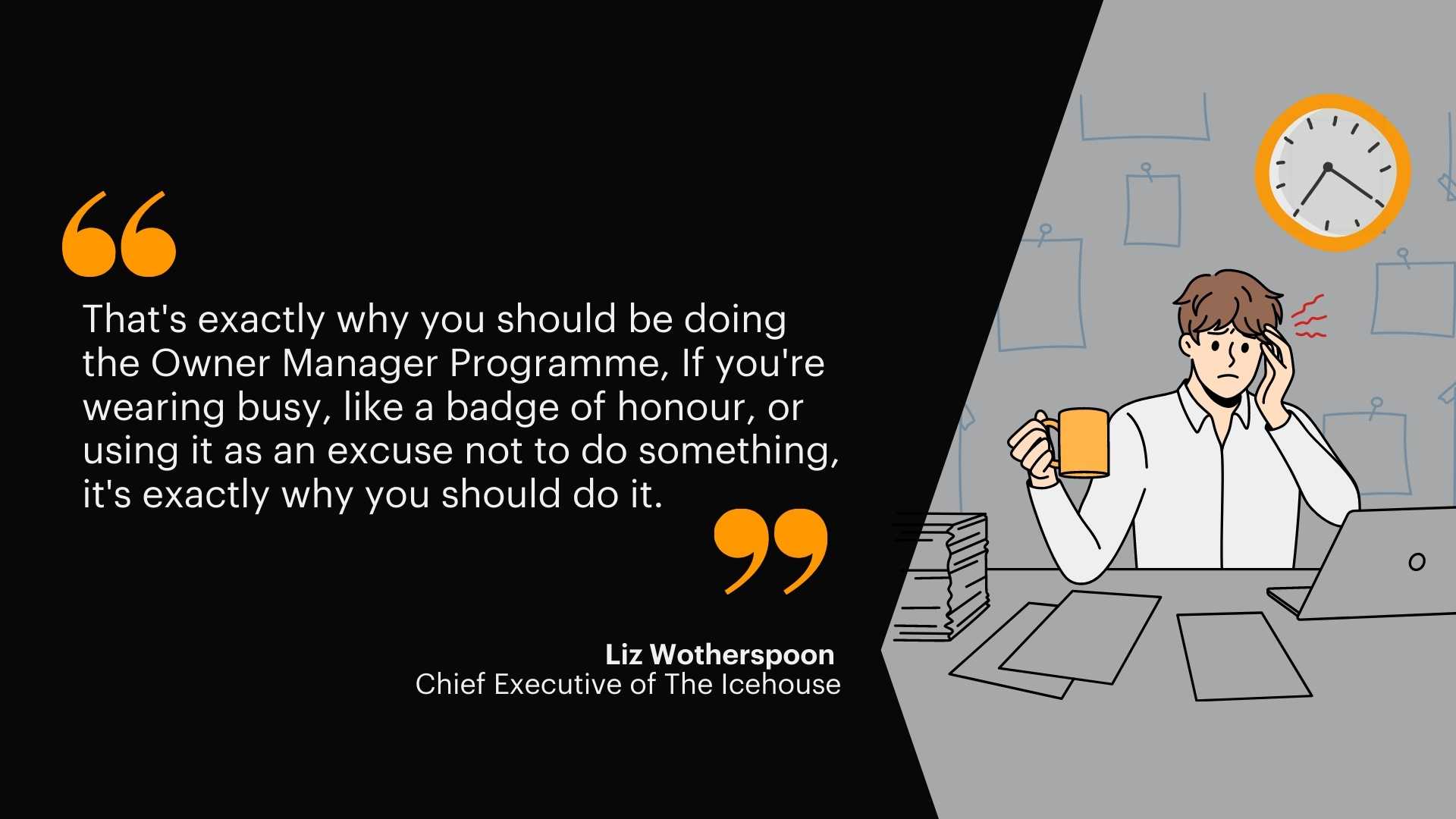 “That's exactly why you should be doing the Owner Manager Programme (OMP),” says Liz Wotherspoon, Chief Executive of The Icehouse. “If you're wearing busy, like a badge of honour, or using it as an excuse not to do something, it's exactly why you should do it.