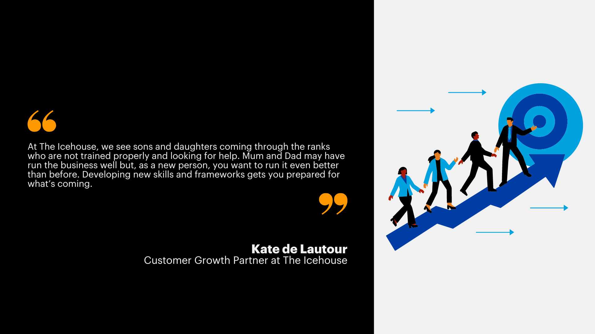 “At The Icehouse, we see sons and daughters coming through the ranks who are not trained properly and looking for help. Mum and Dad may have run the business well but, as a new person, you want to run it even better than before. Developing new skills and frameworks gets you prepared for what’s coming.”
